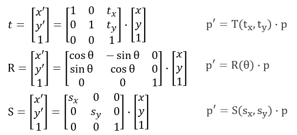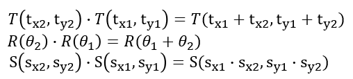 Translation 과 Rotation은 더하고, Scaling은 곱하는 연산이 된다.
