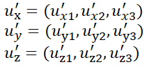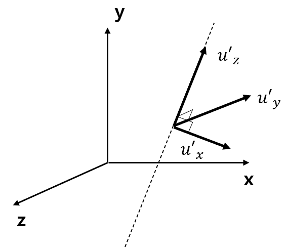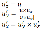 ux' 은 좌표축의 x축과 같이 만들려면, uy'와 uz'에 수직이어야 한다.