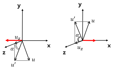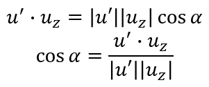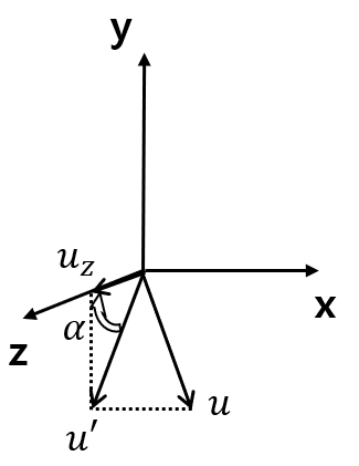 이 u'과 uz 벡터 사이의 각도가 α이다.