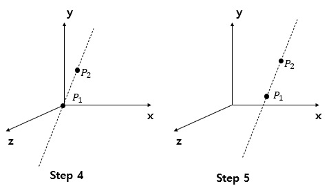 그런데 Step2 에서 z축에 맞게 회전은 어떻게 시켜주는지 한번에 머릿속에 그려지지 않는다.