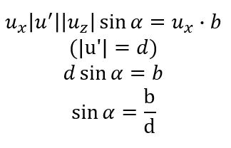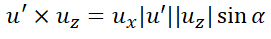이 수식은 말로 해보면 ux는 방향이고, |u'||uz|sinα 는 크기이다.