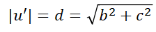 그리고 u'의 크기인 d는 피타고라스의 법칙으로 구할 수 있다.