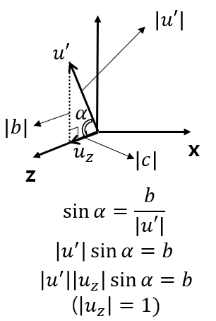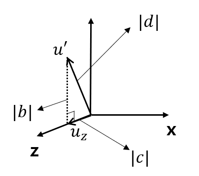 그리고 u'의 크기를 d라고 하고, uz의 크기는 1이다.