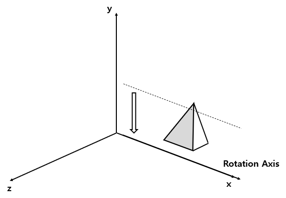 이번엔 어떤 축과도 평행하지 않은 정말 임의의 축을 기준으로 회전해보자.