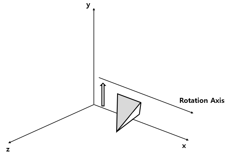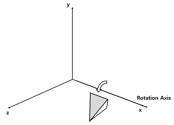 임의의 축이 x과 평행하다고 해보자. 이럴 때 회전은 어떻게 될까?