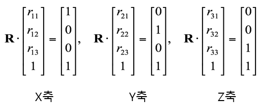y축은 두번째 행, z축은 세번째 행에 속한다.