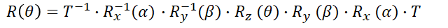좌표축과 평행하지 않는 임의의 축에 대해 θ만큼 회전할 때 연산은 다음과 같다.