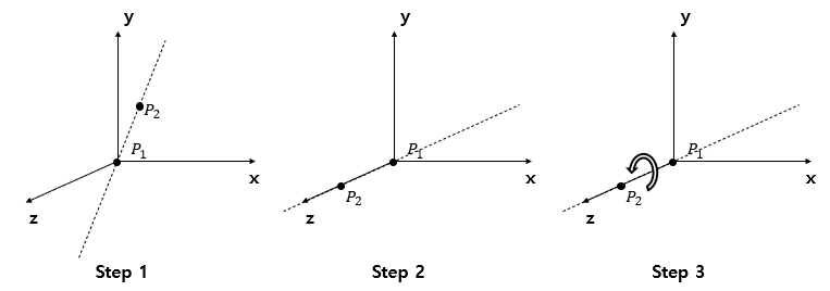 Step 2. 좌표축을 z 축에 맞게 회전 <= (여기에 주목)