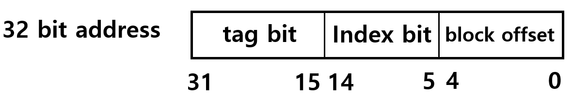 index 와 offset 으로 사용하고 남은 나머지 bit를 tag로 사용한다. 여기선 15~31번 bit가 사용되는 것이다.