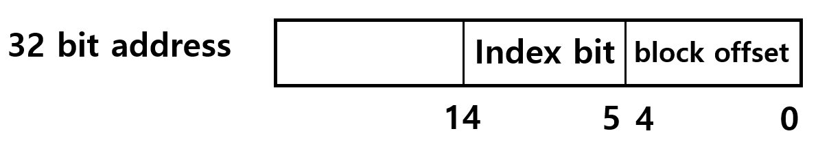 32KB의 Cache가 있다고 가정하고, Cache block size를 32 Byte라고 가정하자.