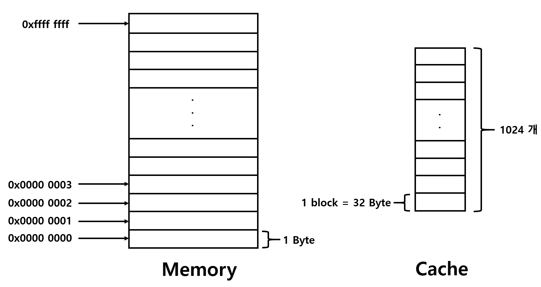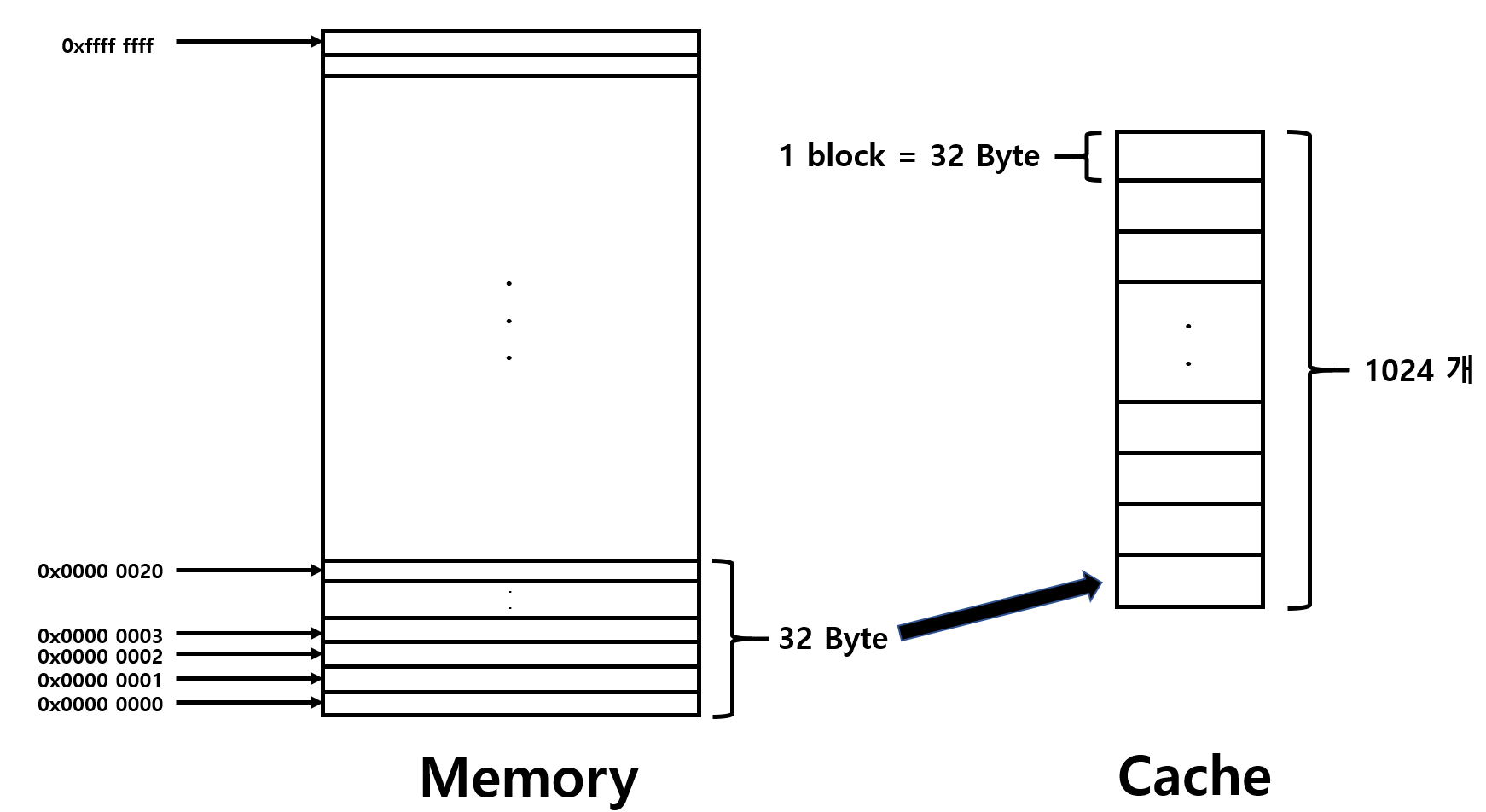 이러면 Cache는 32Byte 크기의 block이 1024개 있는 것이다.
