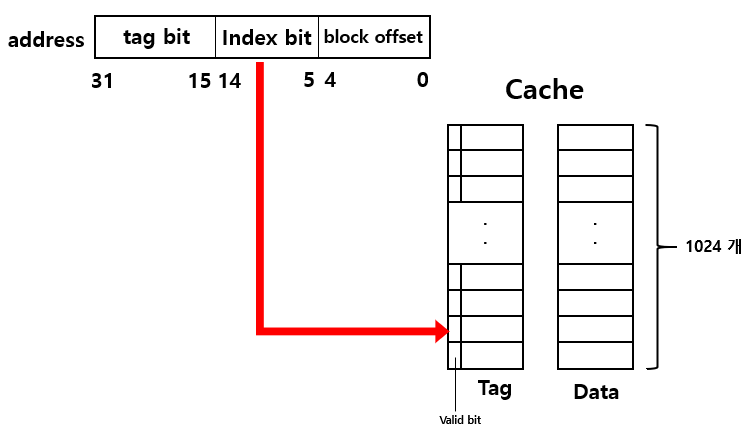 위 그림의 Cache는 block이 총 1024개 있다.
