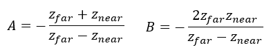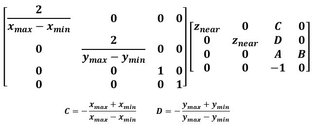 그래서 Z를 -1~1로 만들고, C와 D만큼 이동하여 화면의 Center에 맞춰주고, X와 Y도 -1~1로 만드는 Matrix는 이와 같이 나오게 된다.