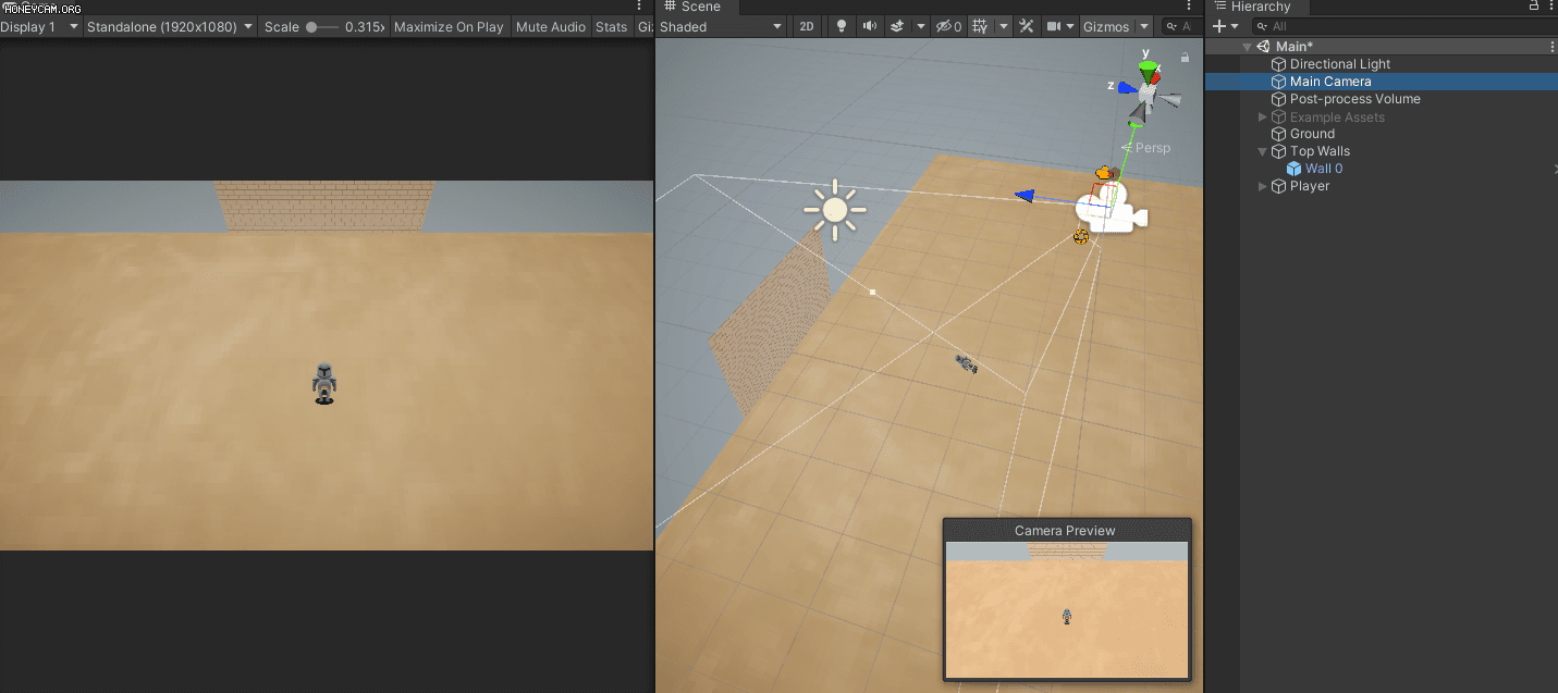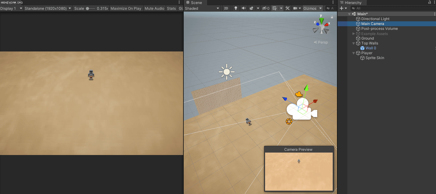 Camera에서 Player가 멀어져서 Ground가 Camera에 더 가까워져도 Player를 잘 보여주는 모습이다.