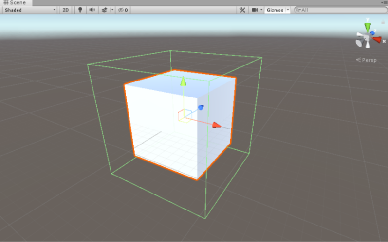 Cube가 실제로 충돌을 감지하는 범위가 초록박스 영역인 Collider입니다. 이미지에선 Collider의 Size를 조금 늘린 것입니다. Collider는 각 모형마다 존재하며 필요에 따라 제거할수도 있습니다.