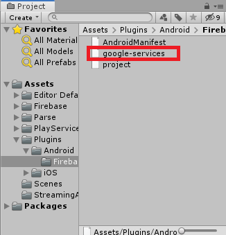 Unity에서 Assets - Plugins - Android - Firebase 에 삽입합니다.