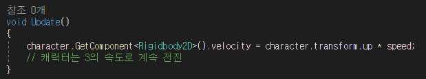 character.GetComponent<Rigidbody2D>().velocity = character.transform.up * speed;