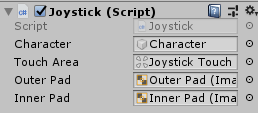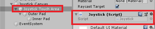 Joystick 스크립트를 Joystick Touch Area에 추가해주었습니다.