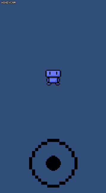 오늘 할 것은, 아래의 조이스틱 패드를 조종(터치 및 드래그)하여 캐릭터를 움직이는 것입니다.