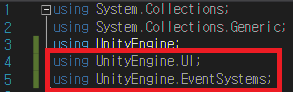 UI를 다루기 위한 UnityEngine.UI를 불러오고