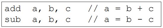 operands에는 두개의 source(b, c)와 한개의 destination(a)이 존재한다.