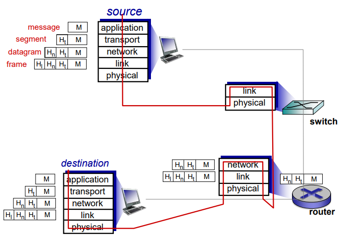 source에서 destination까지 데이터를 보내는 과정은 다음과 같다.