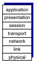 최초의 표준 reference model이다. Internet에서는 application, presentation, session을 묶어서 application layer이다.