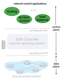 맨 위에 network-control application들 있다. 이게 핵심적인 routing, load balance, access control과 같은 부분이 있다. 여기서 중요한 것은 unbundled이다. 밑에 있는 하드웨어와 독립되어 있다. routing vendor 또는 SDN controller와 분리시킬 수 있다. 이 부분만 다른 vendor를 통해 할 수 있다. 다만 API를 통해서만 하면 된다.