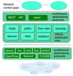 communication layer : switch하고 통신하는 부분. OpenFlow나 SNMP가 있다. 이런 네트워크를 관리하는 protocol들이 붙어있다.