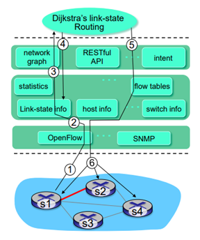 2. 중간에 있는 SDN controller가 이를 받고, 자신의 link state information을 업데이트 한다.