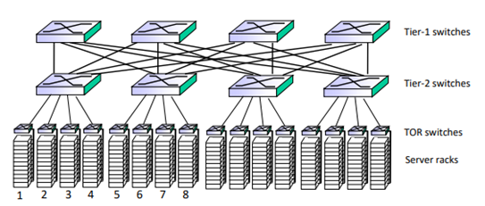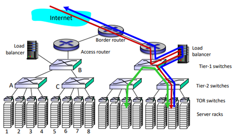 스위치가 Tier별로 있다. 이 load balance는 L3가 아닌 애플리케이션 딴에서 라우팅해주는 것이다. 어느 server로 보낼 것인가하는 이슈이기 때문에 애플리케이션 딴에서 해야한다.