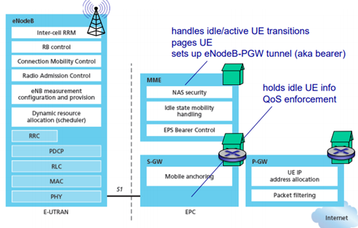 eNodeB라고 하는 기지국은 여러가지 일들을 해준다. 무선 자원에 관리라던지 등등.